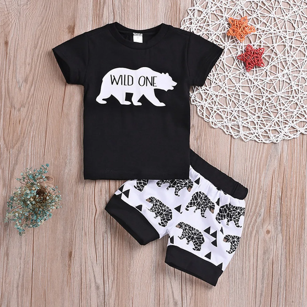 Amazon Ebay Summer Wild One Print Short Sleeve clothing sets Baby Boy 2pcs outfit sets
