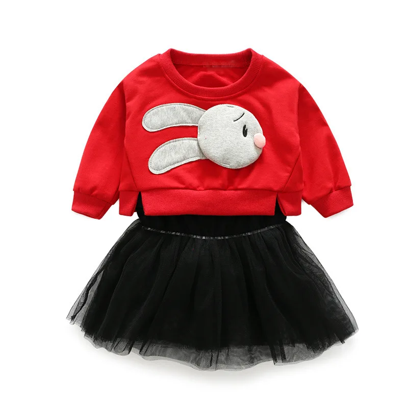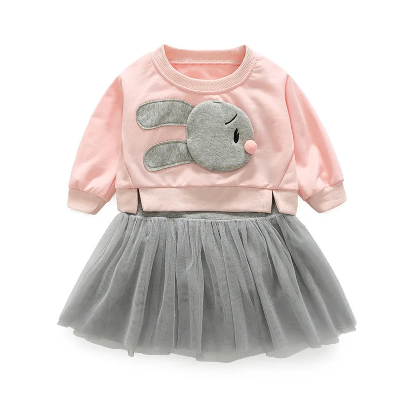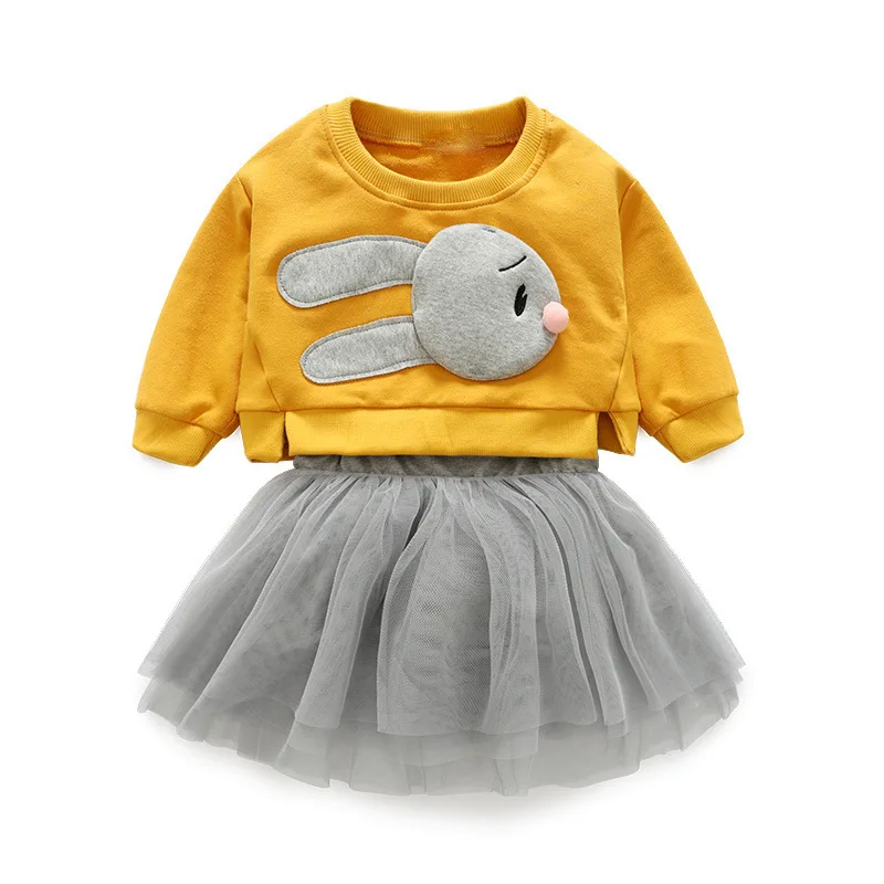 Children chun xia is lovely skirt suit girl cartoon rabbit hoodie halter belt gauze skirt is melting vogue 2 sets