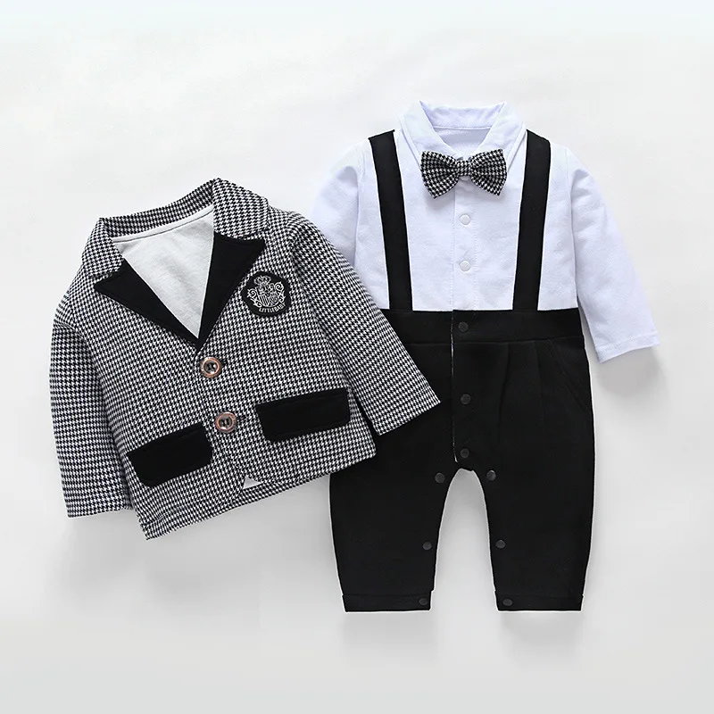 Ivy10057B Newborn boy autumn winter clothing set toddlers party wear little gentleman long sleeve wedding suits
